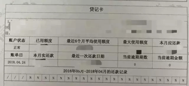 贷款下面就是信用卡,信用卡也有详细的发卡时间跟额度,表格是有已使用额度,近半年的平均使用额度,最近一次还款,当前是否有逾期和当前逾期金额。 信用卡后面还会有显示已经销户或者未激活的信用卡。